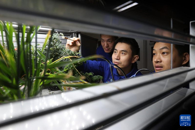2024年2月5日,神舟十八號航天員乘組在進行植物授粉操作。新華社發(fā)(徐部 攝)
