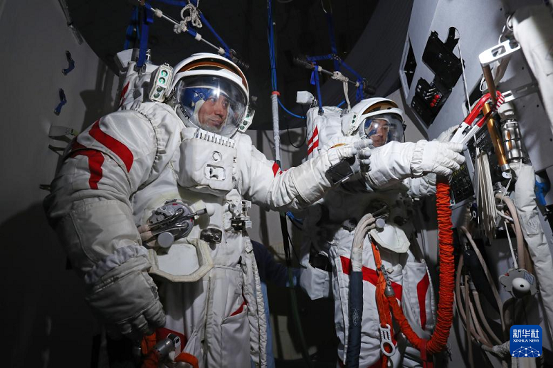 2024年1月15日,神舟十八號航天員葉光富(左)和李廣蘇在進行出艙程序訓練。新華社發(fā)(徐部 攝)