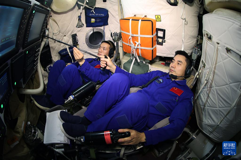 2023年8月22日,神舟十八號航天員乘組在飛船軌道艙訓練。新華社發(fā)(徐部 攝)