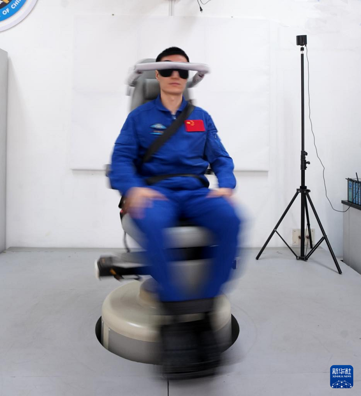 2023年12月4日,神舟十八號航天員李聰在進行轉(zhuǎn)椅訓練。新華社發(fā)(孔方舟攝)