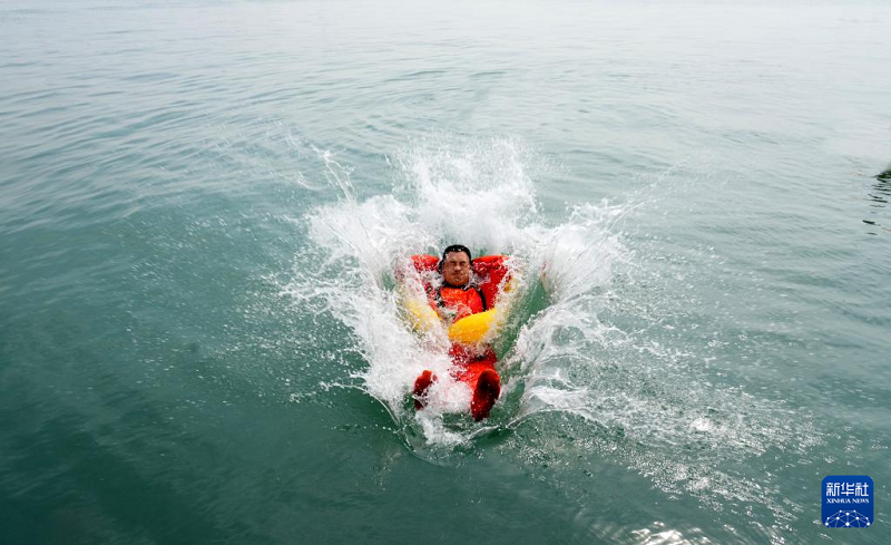 2023年6月28日,神舟十八號航天員李廣蘇參加海上救生與生存訓練。新華社發(fā)(孔方舟 攝)
