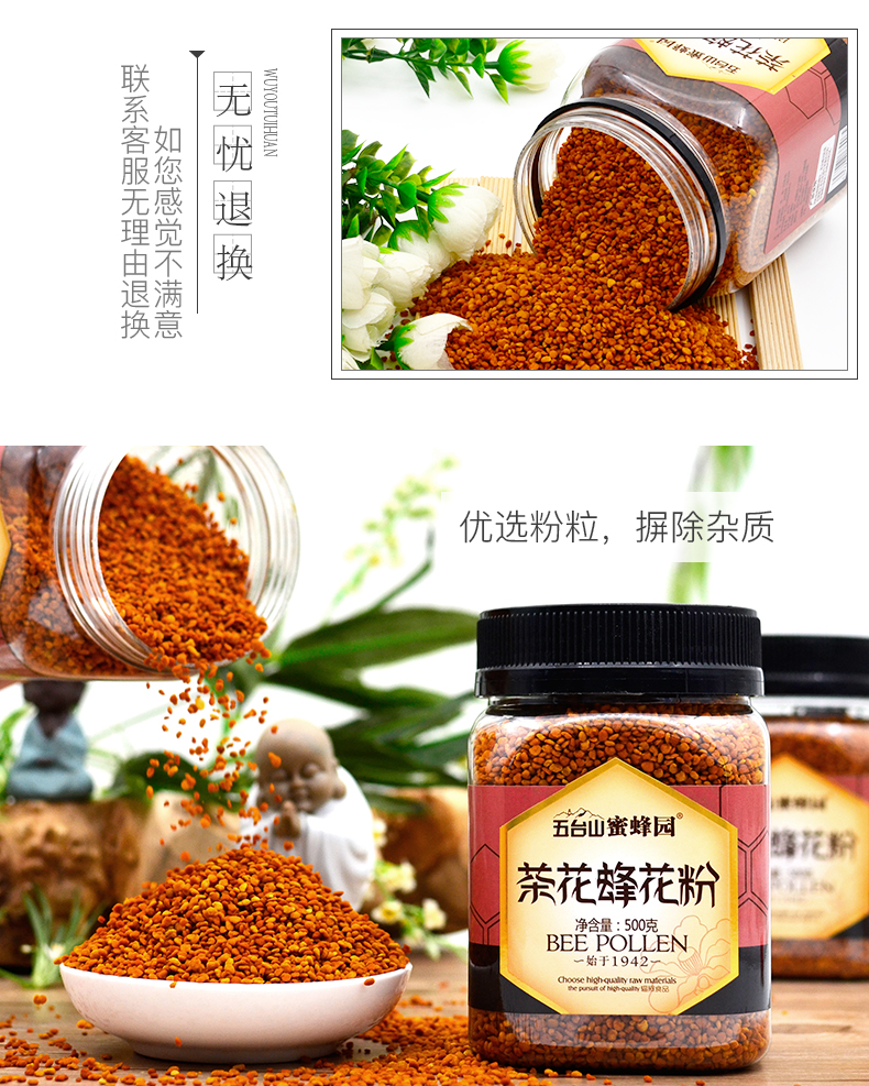五臺(tái)山蜜蜂園茶花蜂花粉500g